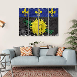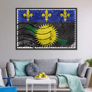 Celebrate the vibrant culture of Guadeloupe with this striking canvas art featuring its flag. The bold colors of blue, black, yellow, and green create a geometric and symbolic representation that adds character to any space.
