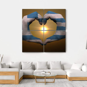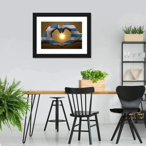 This canvas artwork features hands forming a heart shape, adorned with the Greek flag. The warm, patriotic vibe captures a loving connection to Greece, making it a heartfelt addition to your space.
