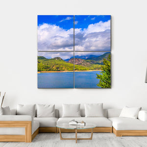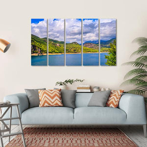 Discover the serene beauty of the Green Canyon in Turkey with this canvas wall art. Featuring lush green mountains, a tranquil lake, and a vibrant sky, it brings a peaceful atmosphere to any space.