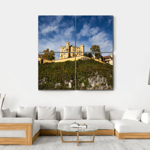 This realistic canvas art captures the majestic Hohenschwangau Castle nestled on a hill, surrounded by vibrant fall trees and a serene blue sky. The enchanting scene invites a sense of history and tranquility, making it a charming addition to your wall decor.