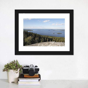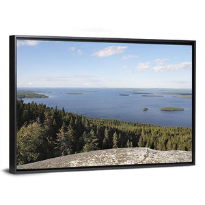 This breathtaking wall art captures a serene and expansive lake in Finland, framed by lush forests, islands, and an expansive sky. The realistic portrayal in calm blues and greens makes it an inviting addition to nature-inspired décor.
