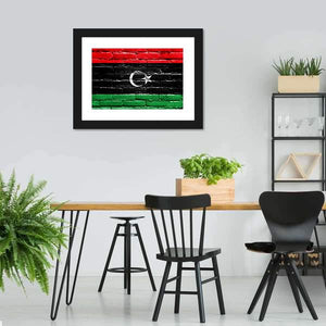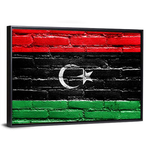 This canvas art features the Libya flag set against a textured brick wall, combining bold colors of red, black, green, and white. Its modern, graphic style evokes a sense of patriotism, making it a striking piece for any space.
