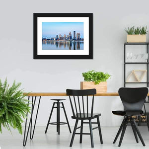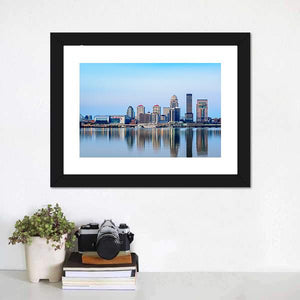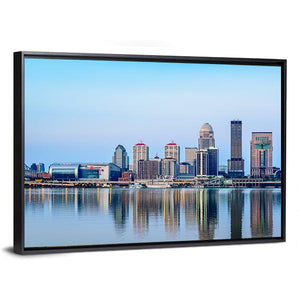 Capture the calm beauty of the Louisville skyline at sunrise with this modern canvas print. Its serene hues of blue and gray beautifully reflect the waterfront and towering buildings, making it a striking addition to any urban-themed décor.