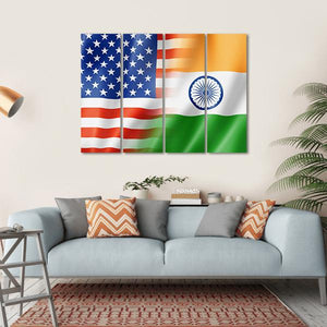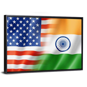 Celebrate diversity with this canvas wall art featuring a bold overlapping design of the American and Indian flags. The vibrant palette of blue, red, white, orange, and green creates a symbolic and unifying atmosphere, making it a striking addition to your wall decor.