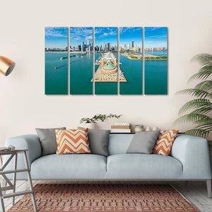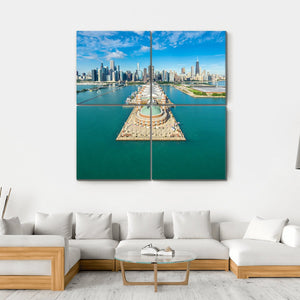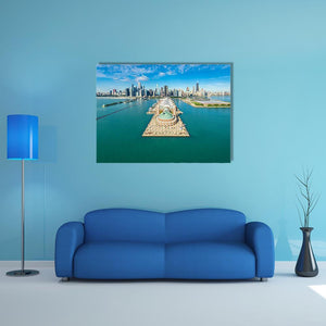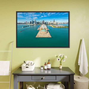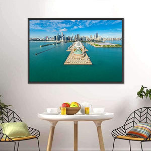 This canvas art captures a vibrant aerial view of Chicago's Navy Pier and skyline, showcasing bright blue skies and the lush greens of Lake Michigan. The expansive composition brings a lively energy to any wall, making it a wonderful addition to your home decor.
