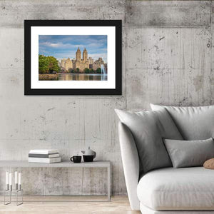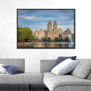 This canvas artwork captures the serene beauty of the New York City skyline, highlighting Central Park and Bethesda Terrace. With its calm palette of blue, brown, and green, it invites a peaceful atmosphere into any space.