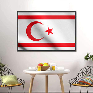 This canvas features the bold flag of Northern Cyprus, showcasing a beautiful design with a white background and striking red elements, including a crescent moon and star. It's a graphic representation that embodies pride and identity, perfect for enhancing any modern space.