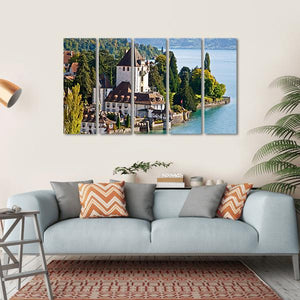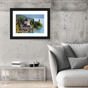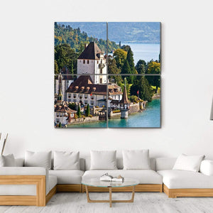 This beautifully realistic canvas artwork captures the enchanting Oberhofen Castle in Switzerland, nestled among serene lakes, vibrant green trees, and majestic mountains. With a tranquil palette of blues and greens, it brings a picturesque mood to any space.