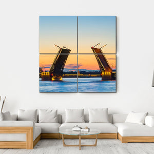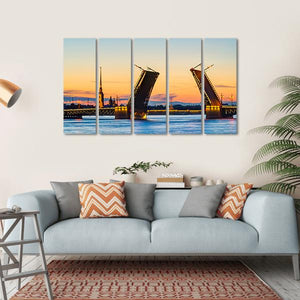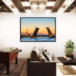 This canvas art features the majestic Palace Bridge, beautifully capturing its architectural details against a serene sky. The distinct blue and yellow hues evoke a nostalgic atmosphere, perfect for adding charm to your wall decor.