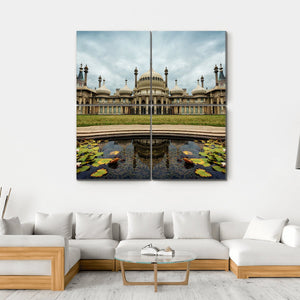 Capture the enchanting beauty of the Royal Pavilion with this canvas wall art. Featuring a serene pond adorned with water lilies and reflecting the palace's majestic domed roofs, this piece brings a touch of architectural elegance to your decor.