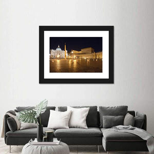 This striking canvas captures the grandeur of St. Peter's Square in Vatican City at night. With its illuminated cobblestone pavement and majestic colonnade, it brings a sense of calm and splendor to your space.