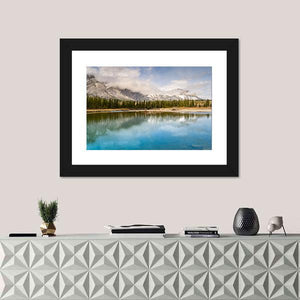 Capture the serene beauty of The Bow River in Canada with this stunning canvas art. Featuring a tranquil landscape of mountains, lakes, and forests, it brings a natural calm to your space with a harmonious palette of blue, green, and gray.