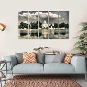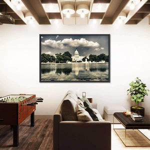 This calm and serene canvas art features the iconic domed building of The Capitol in Washington, reflected beautifully in tranquil waters. The vintage, photographic style brings a historical touch to your decor, making it a perfect piece for any art lover.