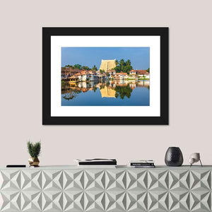 Experience the serene beauty of the Thiruvananthapuram Temple with this stunning canvas wall art. The grand, ornate structure reflects gracefully in calm waters, surrounded by a harmonious palette of blue, yellow, and earthy tones. This piece captures the tranquil essence of traditional architecture and is perfect for enhancing your living space.