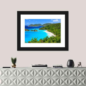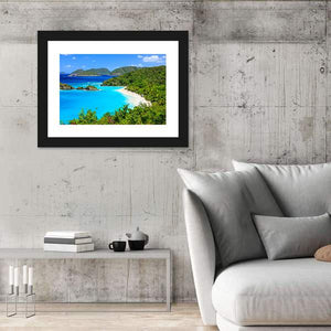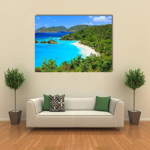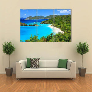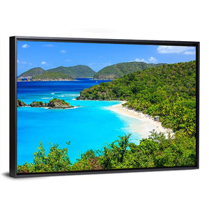 This vibrant canvas art captures the serene beauty of Trunk Bay on St John Island. With its tropical beach, turquoise waters, and lush green hills, it infuses any space with an idyllic, summery atmosphere.