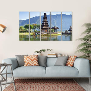 This canvas art beautifully captures the Ulun Danu Temple and Beratan Lake, framed by mountains and a clear blue sky. Its serene and spiritual vibe invites a peaceful atmosphere into your space, making it a lovely addition to any wall decor.