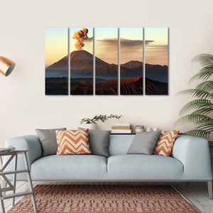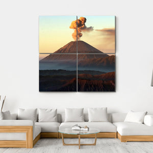 This canvas art captures the awe-inspiring Semeru Volcano in Indonesia, showcasing a dramatic scene of a volcanic eruption against a smoky sky. The layered mountains and powerful colors of orange, brown, and gray evoke a sense of nature's raw energy.
