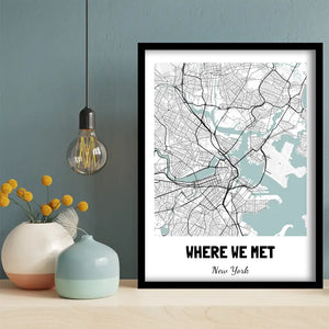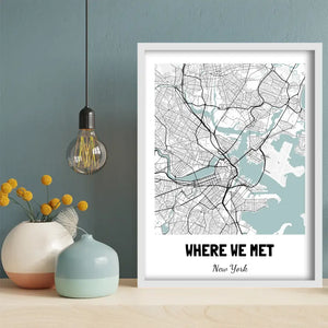 This wall art print is not only a beautiful and thoughtful way to decorate your home, but it is also a great gift idea for anniversaries, Valentine's Day, or any special occasion. Our "Where we met" map wall art is sure to bring back fond memories and add a touch of love to your home. Order yours today and celebrate your special moments in style.
