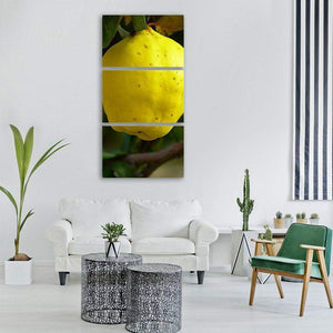 A close-up, realistic study of quince fruit on a branch showing yellow fruit with brown spots, green leaves, and a brown branch. The image feels natural, organic, and simple with a daytime atmosphere. It suits modern and nature-inspired kitchens, dining areas, or casual living spaces.