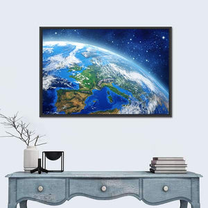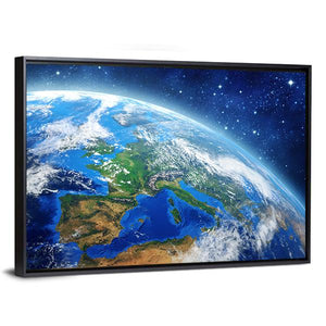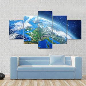 This canvas art offers a breathtaking view of Earth from space, showcasing vibrant continents, oceans, and clouds against a cosmic backdrop of stars. Its awe-inspiring imagery brings a sense of wonder and would enhance any modern room's decor.