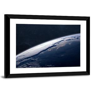 This canvas art features a breathtaking view of Earth from space, showcasing the delicate atmosphere, clouds, and distant stars. Its serene and awe-inspiring mood makes it a great addition to modern wall decor.
