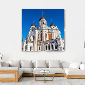 Capture the grandeur of Tallinn's Alexander Nevsky Cathedral with this stunning canvas print. Featuring majestic domes and intricate architectural details, this artwork evokes a bright and historic atmosphere, perfect for any art lover.