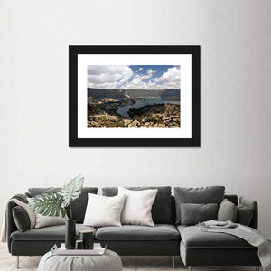 Experience the serene beauty of Ethiopia's Wenchi Crater Lake through this captivating canvas wall art. Featuring winding rivers, layered mountains, and scattered vegetation, this piece brings a peaceful and natural ambiance to any space.