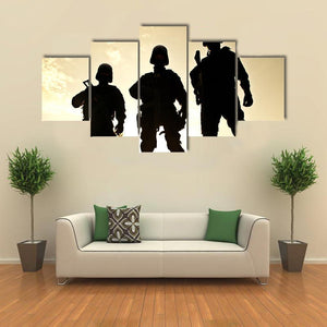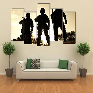 Silhouettes of Swat Officers Holding Guns Canvas Wall Art