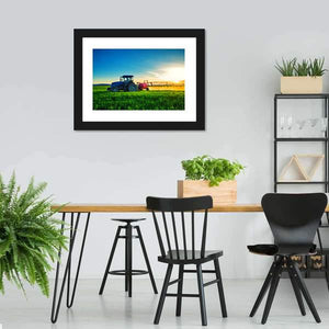 Tractor Plowing and Spraying in a Field Canvas Wall Art