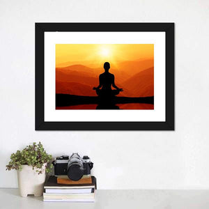 Meditating Man Silhouette at Sunset Canvas Wall Art