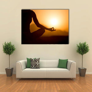 This canvas art features a woman meditating in a serene silhouette against a beautiful sunset backdrop. The rich palette of orange and yellow hues evokes a calm and peaceful mood, making it an ideal addition to any tranquil space.