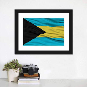 This vibrant piece features the flag of The Bahamas, captured as it flows and waves boldly. Its striking colors of black, yellow, and blue create a dynamic atmosphere, making it a fitting highlight for modern decor.
