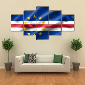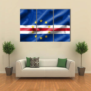 This canvas features the national flag of Cape Verde, highlighting the ring of stars and a textured fabric effect. Its blue, white, red and yellow palette gives a proud, patriotic feel that works well in modern homes and room decor such as living rooms, offices, or entryways.