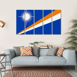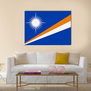 Bring a touch of patriotism to your space with this striking canvas art featuring the national flag of the Marshall Islands. The bold blue, orange, and white design, accented by a prominent white star, creates a vibrant focal point for any room.