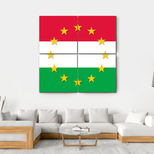 This canvas features the Hungary national flag, showcasing a striking horizontal tricolor of red, white, and green. The composition is balanced and graphic, enhanced by a circle of ten yellow stars, embodying a symbolic representation of national pride.