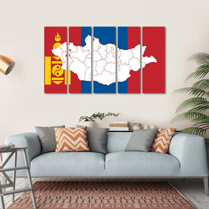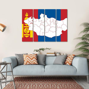 This canvas art features a detailed map of Mongolia alongside its vibrant flag. With a palette of red, blue, and white, it conveys a patriotic and informative atmosphere, making it an engaging piece for your decor.