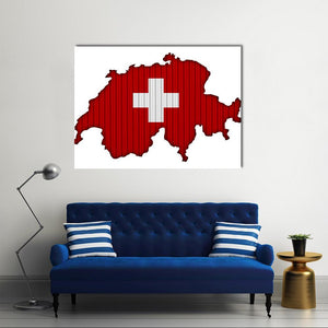 This canvas art features a detailed map of Switzerland overlaid with the iconic Swiss flag, creating a striking visual statement. The bold red and white palette evokes a sense of patriotism, perfect for adding a modern touch to your wall decor.