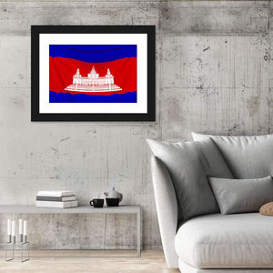 This canvas art features the flag of Cambodia with its iconic temple design, expressed through a proud and nationalistic lens. The vivid red, blue, and white palette adds a striking presence to any wall.