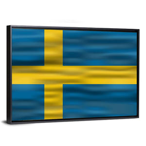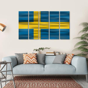 Celebrate Swedish heritage with this striking flag art. The composition features a symmetrical design with a horizontal and vertical yellow cross on a vibrant blue background, evoking a sense of patriotism. Its modern abstract style makes it a captivating addition to any wall.