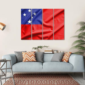 Celebrate your love for Samoa with this striking canvas art featuring a waving flag adorned with stars. The vibrant red, blue, and white palette conveys a formal and patriotic atmosphere, making it an ideal addition to any room decor.