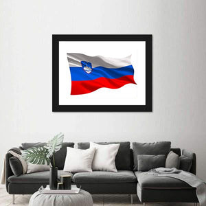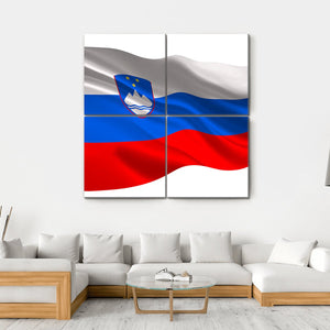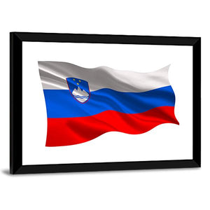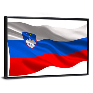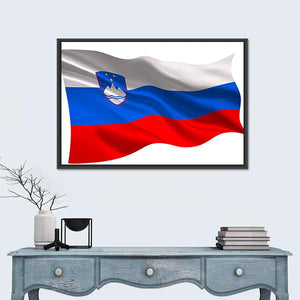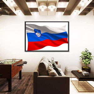 Show your pride with this beautiful depiction of the Slovenia national flag. Featuring a realistic portrayal of a waving flag and coat of arms, this canvas art captures a sense of patriotism and honor.