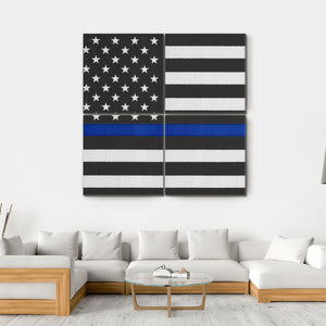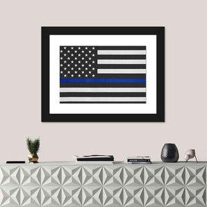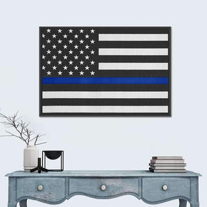 Celebrate patriotism with this striking canvas art featuring the United States flag. The bold colors of black, white, and blue create a modern twist that makes it a standout piece for any wall.