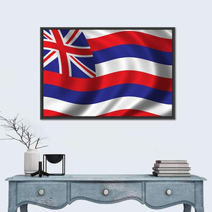 This vibrant canvas art features the waving flag of Hawaii, showcasing bold colors of red, white, and blue. Its modern design adds a patriotic touch to your space, making it a striking focal point for any room.