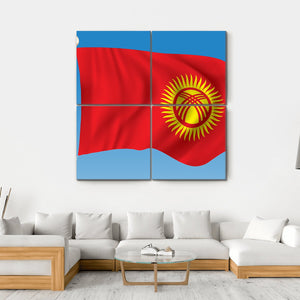 Celebrate the spirit of Kyrgyzstan with this vibrant canvas art featuring a bold, wavy depiction of the national flag. The red, yellow, and blue palette adds a patriotic touch to your space, making it a striking focal point for any room.