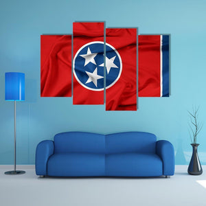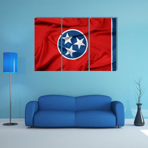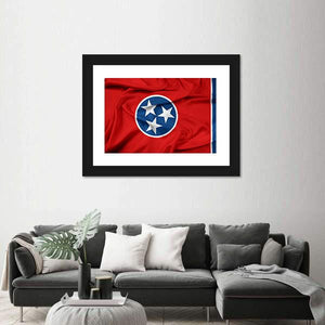 Waving Tennessee Flag Canvas Wall Art features the Tennessee flag in a clean, graphic composition with an implied fabric texture. The symmetrical red, white, and blue design feels patriotic and proud, suited to modern homes and patriotic room decor.