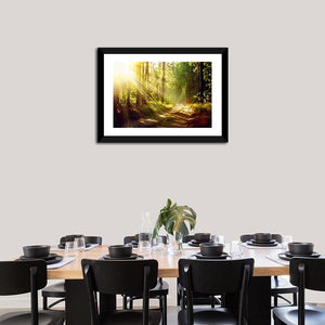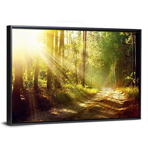 Capture the tranquil beauty of a forest path where sunlight filters through the trees. This artwork evokes a serene and peaceful atmosphere, making it a lovely addition to nature-inspired décor.