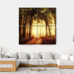 This canvas wall art captures a tranquil forest path bathed in warm sunlight. The golden hues of autumn leaves blend beautifully with deep greens and browns, creating a serene atmosphere that invites reflection. It’s an ideal addition to nature-inspired décor, bringing a peaceful vibe to any room.