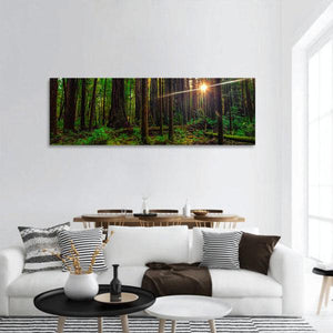 Sunlight In The Redwoods Forest Panoramic Canvas Wall Art