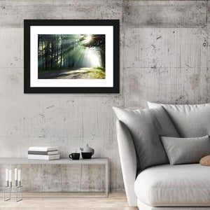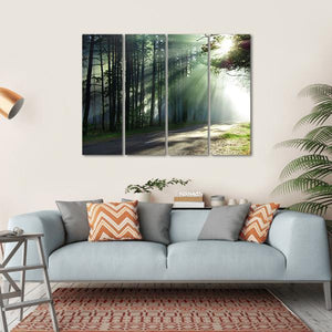 Sunlight Rays On The Forest Road Canvas Wall Art