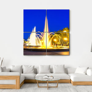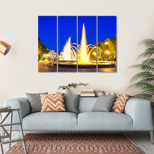 This vibrant canvas wall art captures a stunning display of dancing fountains in Batumi Boulevard, Georgia. With its lively atmosphere and peaceful park setting, it reflects the beauty of a nighttime scene filled with illuminated waters and surrounding greenery.